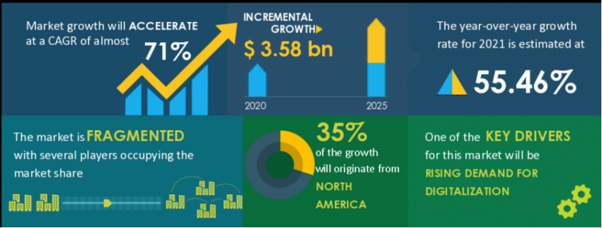 Un informe de junio de 2021 publicado por ReportLinker mencionó el aumento potencial. En este documento, el mercado de la identidad de la blockchain crecerá otros 3,580 millones de dólares para 2025 a una tasa de crecimiento anual compuesta del 71%.