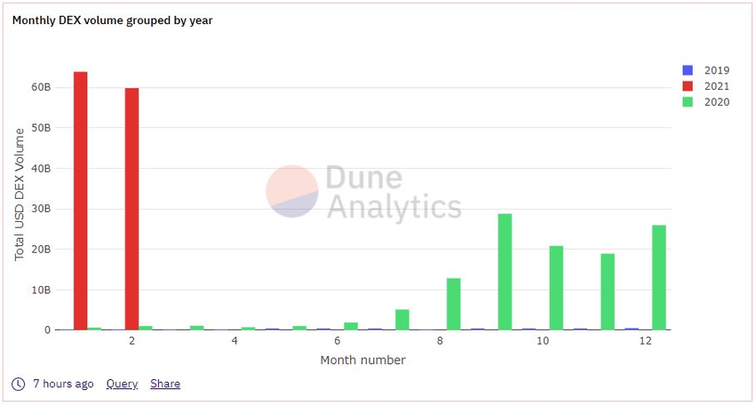 Como señaló Bloqport Insights en un tuit, los DEX han visto volúmenes de más de 120 mil millones de dólares, una cantidad mucho más alta que los volúmenes que los exchanges procesaron en todos sus años anteriores.