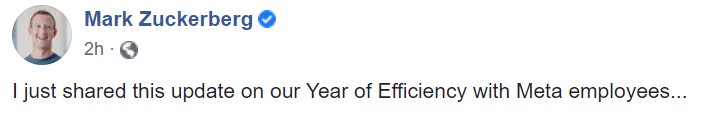 Meta, la casa matriz de Facebook e Instagram, hizo este anuncio a través de un post en Facebook de su CEO, Mark Zuckerberg, en el que aseguró que los objetivos de esta decisión son hacer a la empresa “la mejor” en el mundo tecnológico y “mejorar su desempeño financiero” en medio del caos económico que hay en el mundo.