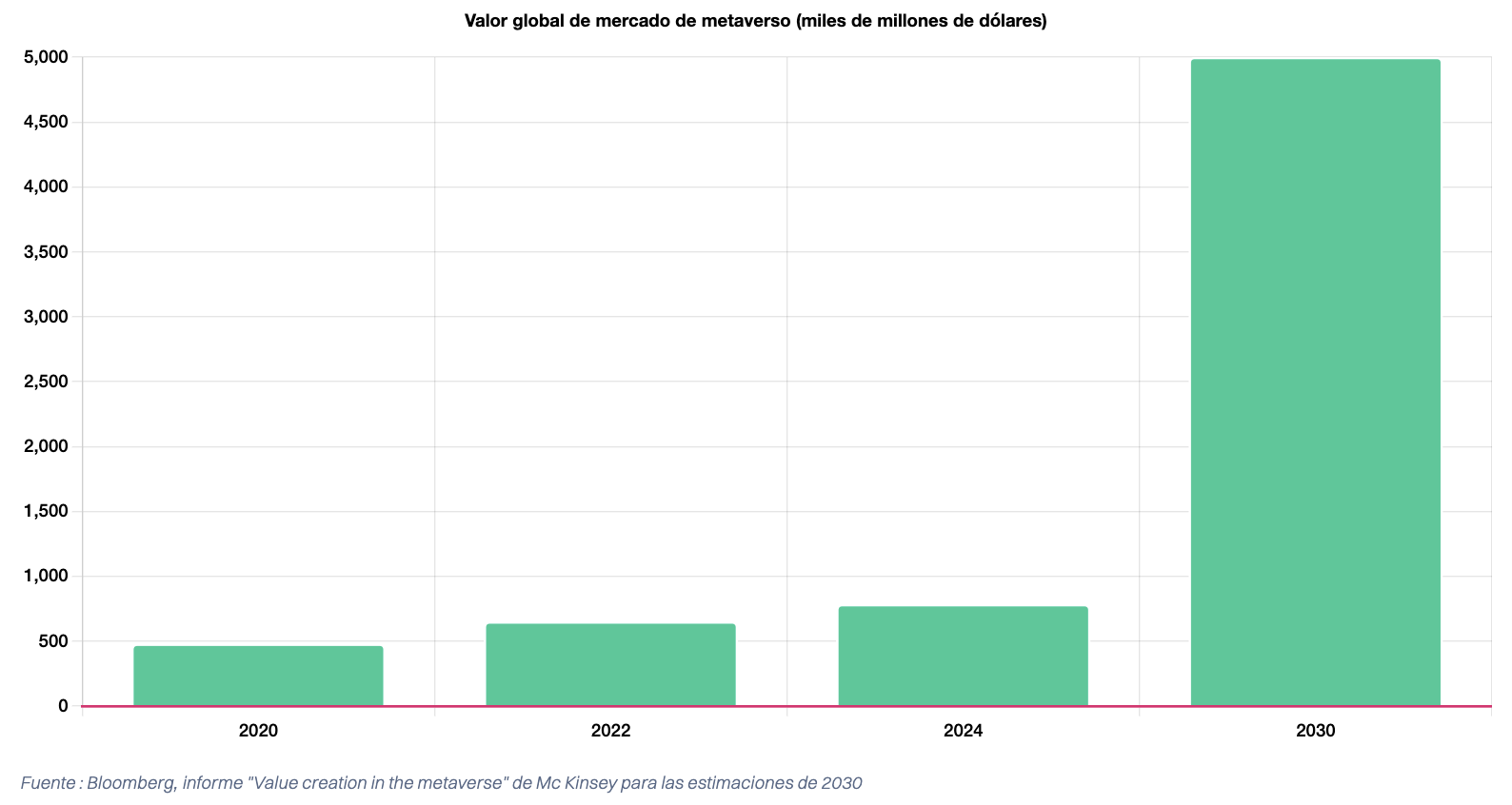 El último informe de Hellosafe reportó que el mercado del metaverso crecerá 670%, mientras que sus ingresos en 2020 eran de 478,7 mil millones de dólares y en 2022 era de 650 mil millones de dólares. Para 2030, los ingresos del metaverso podrían superar los 5 billones de dólares.