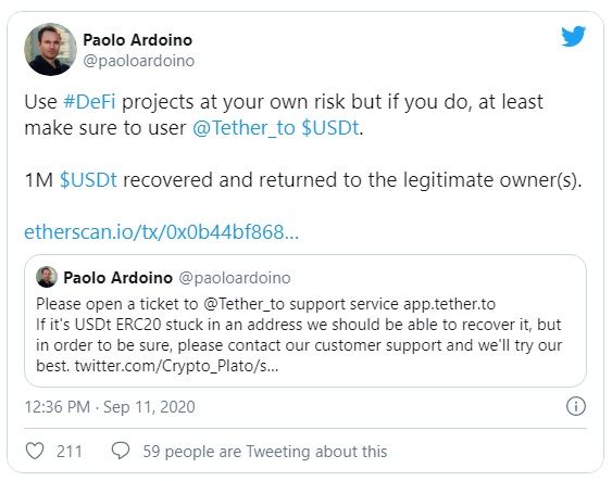 Sin embargo, algunos observadores de la industria de las criptomonedas están preocupados por la creciente importancia de Tether en DeFi. Tether demostró recientemente su control sobre USDT luego de la transferencia accidental de un millón de sus tokens vinculados al dólar por parte de un usuario de DeFi.