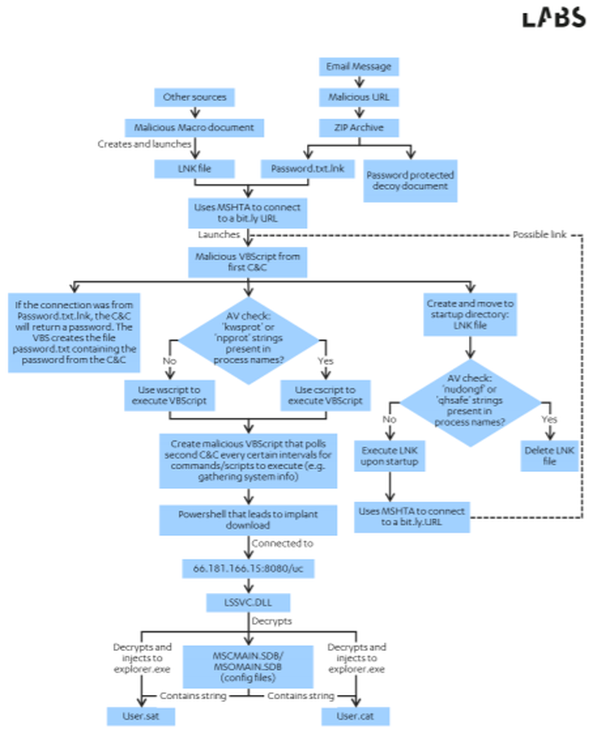 Además, F-secure encontró similitudes en la “cadena de infección” que tomó el malware. En otras palabras, la secuencia de archivos que se infectaron para finalmente apoderarse de la computadora fue muy similar.