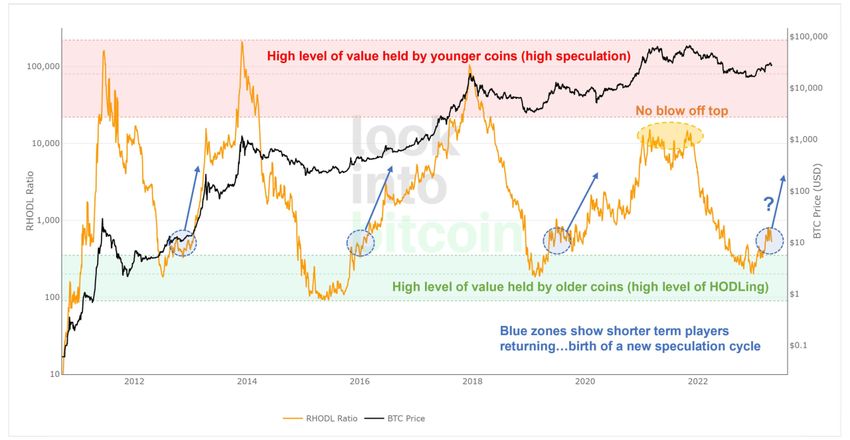 El indicador on-chain RHODL se encuentra en una posición similar a la que tenía al comienzo de los dos últimos mercados alcistas principales de Bitcoin.