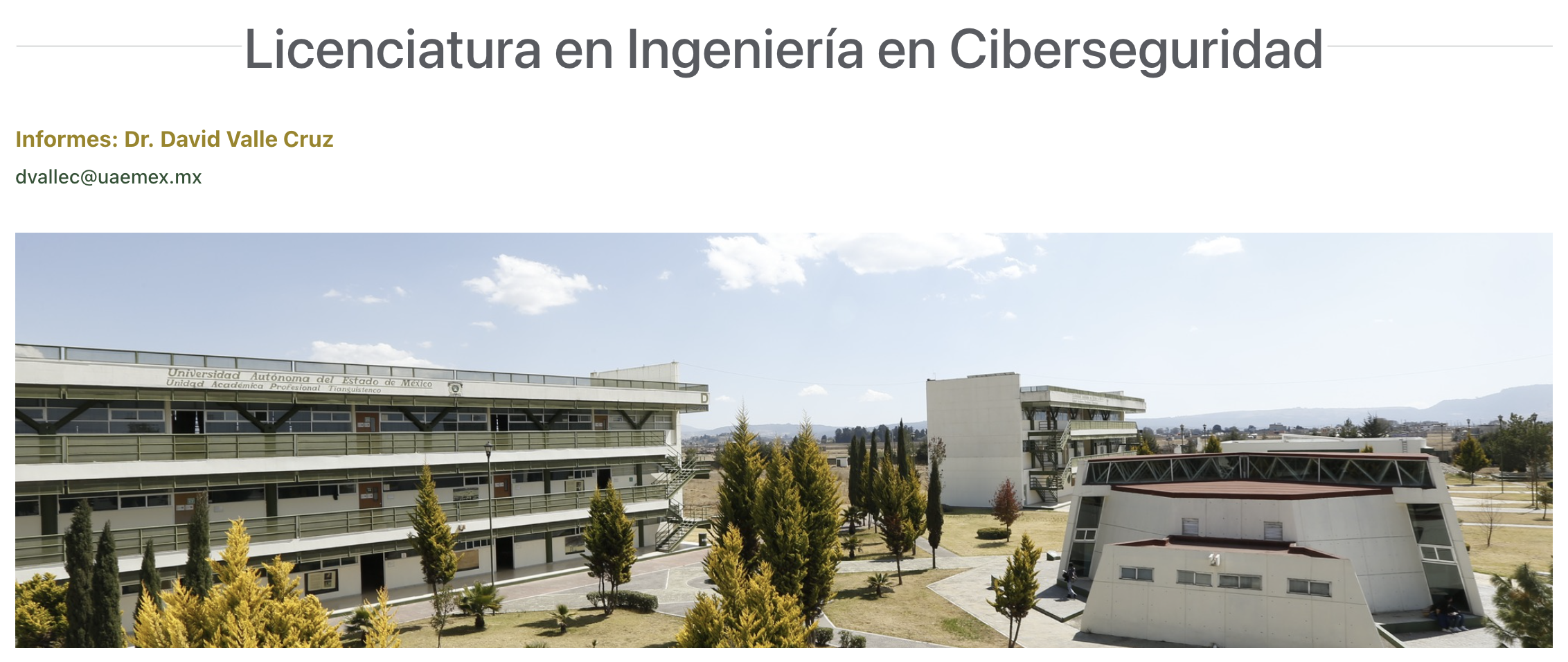 La Universidad Autónoma del Estado de México (UAEMex) ha inaugurado la carrera de Ingeniería en Ciberseguridad en su Unidad Académica de Tianguistenco, ubicada en Santiago Tianguistenco de Galeana, en el Estado de México.