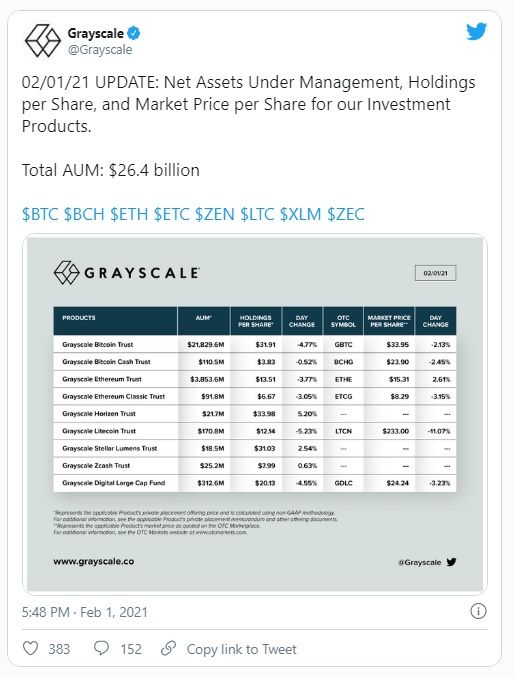 MicroStategy no es el único inversor institucional que recientemente han comprado criptomonedas. El conocido inversor en cripto, Grayscale Investments también está haciendo olas en la industria, con informes de nuevos fondos basados en DeFi en proceso.