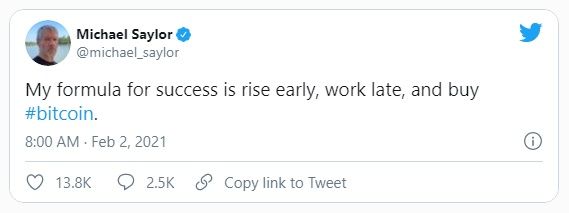 Esto se suma a la gran cantidad de reservas en BTC que posee la empresa con un valor de más de 1 mil millones de dólares. Al anunciar la compra, Saylor dijo en un tweet que comprar Bitcoin es parte de su fórmula para el éxito.