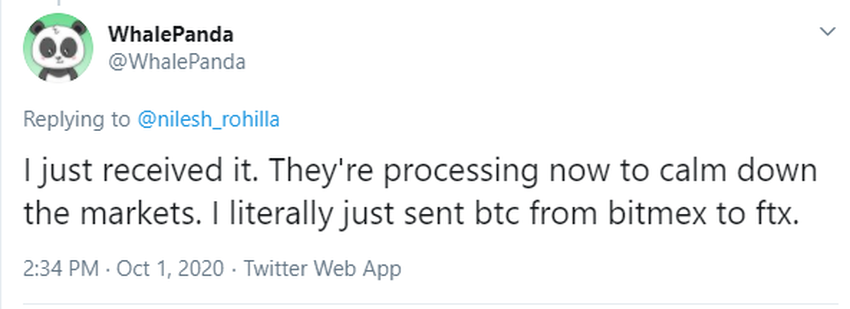 Quizás tenga algo que ver con el hecho de que BitMEX todavía está procesando retiros para no causar pánico. Su estrategia parece estar funcionando, por ahora.