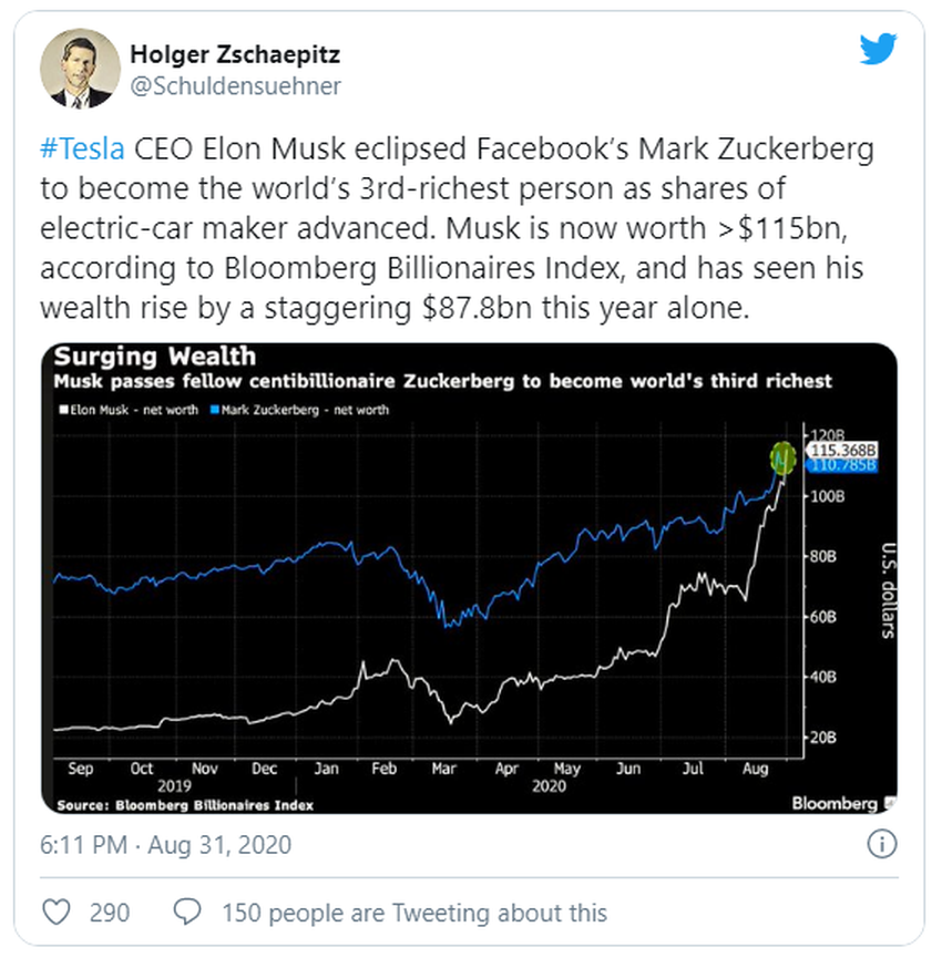 SponsoredEsto se debe a que las acciones de TSLA se han disparado varios cientos por ciento este año hasta ahora y se cotizan a más de 1.000 veces las ganancias. Las ganancias están llegando a la par, especialmente desde que Elon Musk anunció una división de acciones.