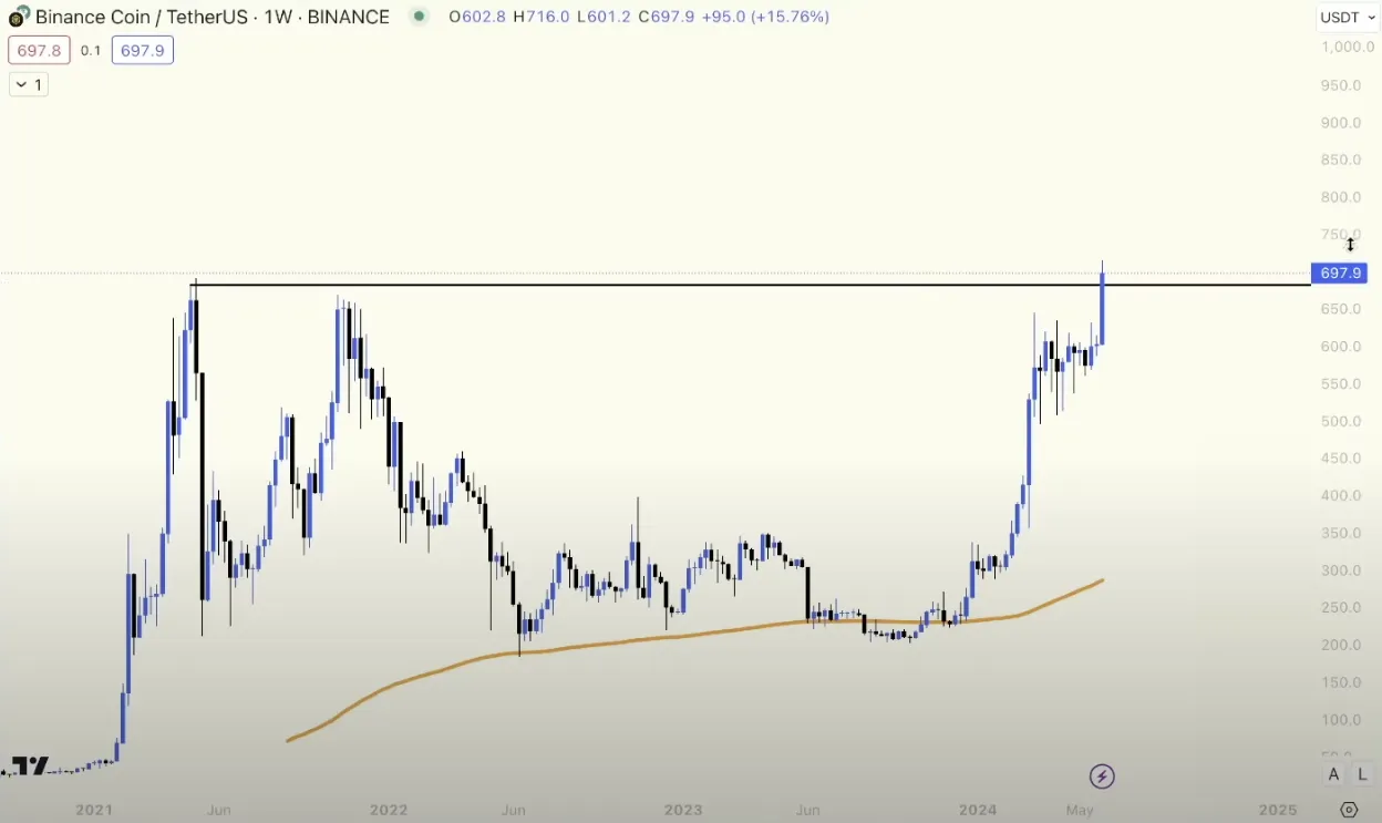 Binance Coin, el token nativo del ecosistema Binance, es otra altcoin que Deutscher cree que tiene un gran potencial. BNB ha mostrado resistencia, haciendo nuevos máximos históricos y rompiendo niveles en el gráfico semanal. Deutscher sugirió que la alta capitalización de mercado de BNB podría no conducir a ganancias exponenciales, pero aún representa un trading sólido.