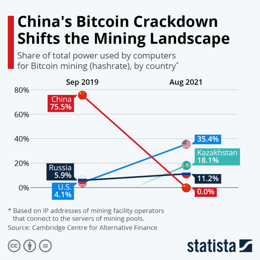 China prohibió la práctica de la minería de Bitcoin dentro de sus fronteras en 2021. Esto empujó a las empresas de cifrado a establecerse en otros lugares, incluido Estados Unidos.