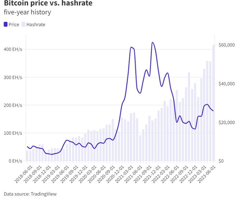 SponsoredDe hecho, el hashrate de Bitcoin ha aumentado constantemente con el tiempo con una mayor competitividad entre los mineros.