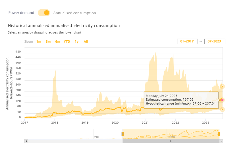 A lo largo de los últimos años, el consumo de energía empleado por la red Bitcoin ha estado fuertemente cuestionado, especialmente desde organizaciones ecologistas. Datos divulgados por la Universidad de Cambridge confirman que es superior al consumo anual individual de países como Ucrania, Pakistán, Noruega, Argentina, Chile y los Emiratos Árabes Unidos, entre otros.