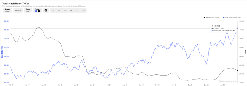 Desde principios de año, el hashrate total de Bitcoin, una medida de los recursos informáticos desplegados para validar transacciones en la red, ha aumentado de 253,000 petahashes por segundo a 304,000 petahashes por segundo.