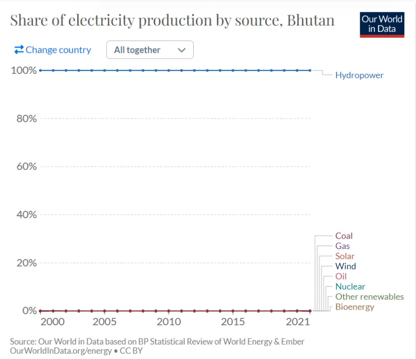 Bután utiliza actualmente energías renovables para todos sus requisitos energéticos.