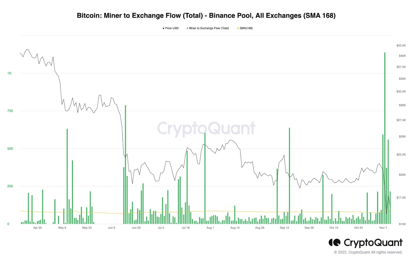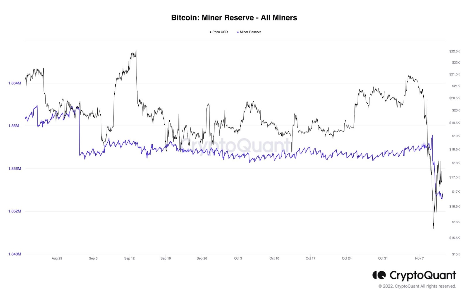 Esta última situación se está observando actualmente. El 9 de noviembre, BTC cayó a un mínimo de 15,588 dólares. Esto ha causado que incluso los mineros de Bitcoin más grandes, que tienen energía relativamente barata y el mejor equipo, se encuentren perdidos.