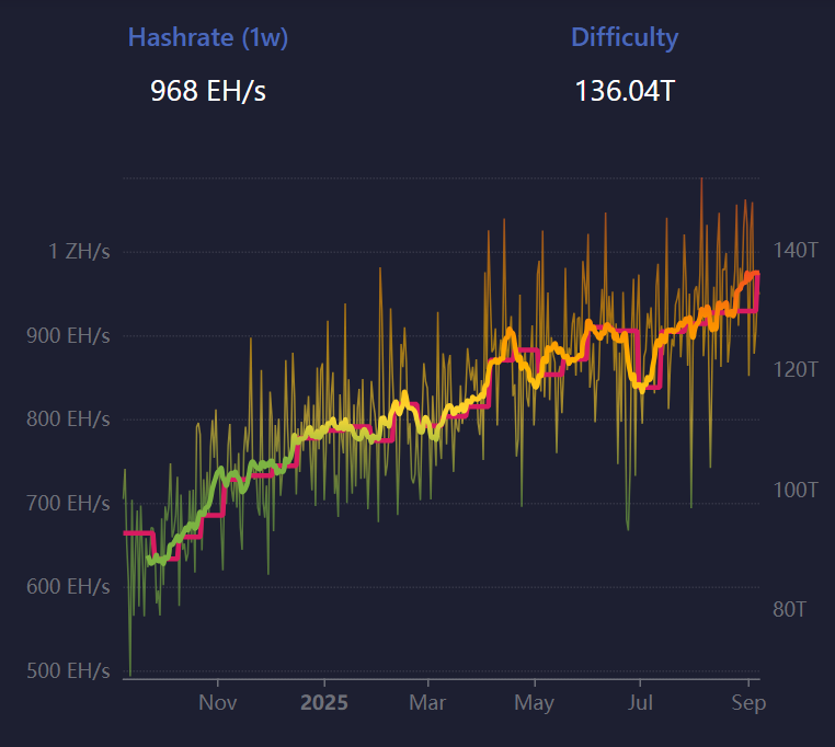 El ajuste, registrado en la altura de bloque 913.248, marcó un aumento del 4% desde 129,6T y extendió una racha de cinco aumentos consecutivos desde junio, según cifras de Mempool.