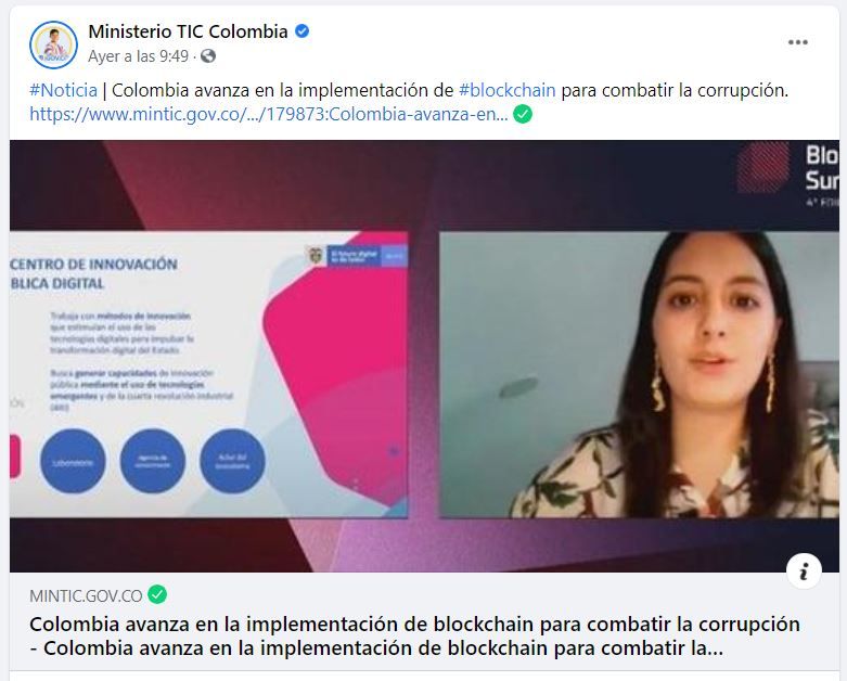 El Ministerio de Tecnologías de la Información y las Comunicaciones (TIC) de Colombia firmó un memorándum de entendimiento con el laboratorio de innovación del Banco Interamericano de Desarrollo (BID Lab) y con la plataforma de software Grupo Sabra, para diseñar soluciones blockchain que permitan combatir la corrupción.