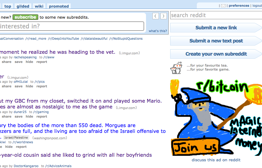 Aproximadamente en el mismo período, los miembros del subreddit de Bitcoin lograron recaudar dinero para lanzar la primera campaña publicitaria de Bitcoin, conocida como “dinero mágico de Internet”.