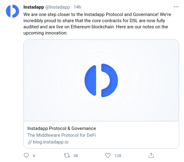 Instadapp declaró que sus contratos centrales de la plataforma DeFi Smart Accounts (DSA) están completamente auditados y se encuentran en la blockchain de Ethereum.