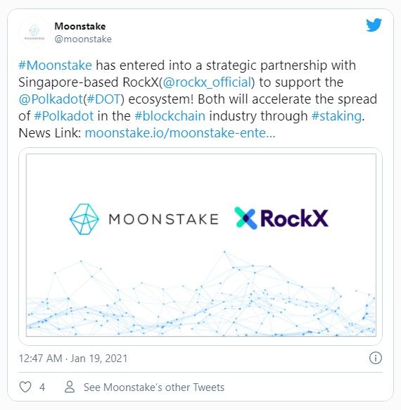 La empresa de pools de staking Moonstake y RockX, con sede en Singapur, se están asociando para respaldar el desarrollo de la red Polkadot.