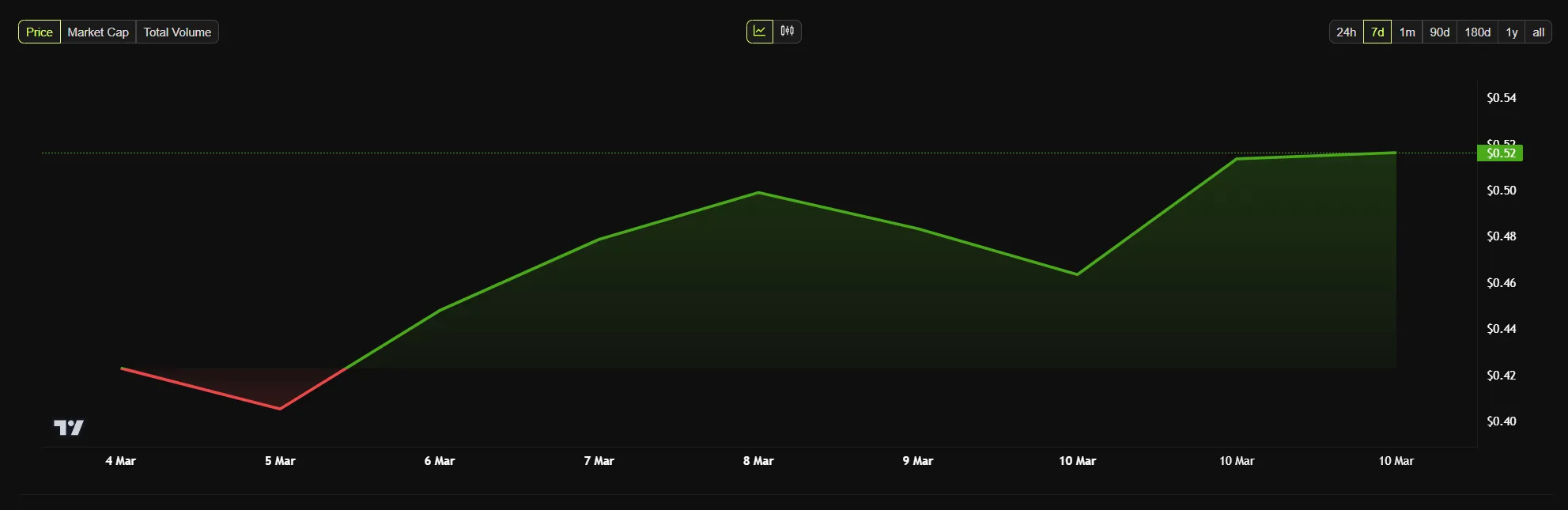 A pesar de la caída del mercado cripto en general, MOVE de Movement Network ha subido más del 6% hoy y 14% en una semana.