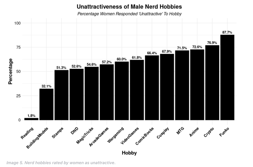 La encuesta Date Psychology encuestó a 814 personas, el 48% de las cuales eran mujeres. Al evaluar el atractivo de varios pasatiempos masculinos, solo el 23.1% de las mujeres encuestadas calificaron las criptomonedas como atractivas.