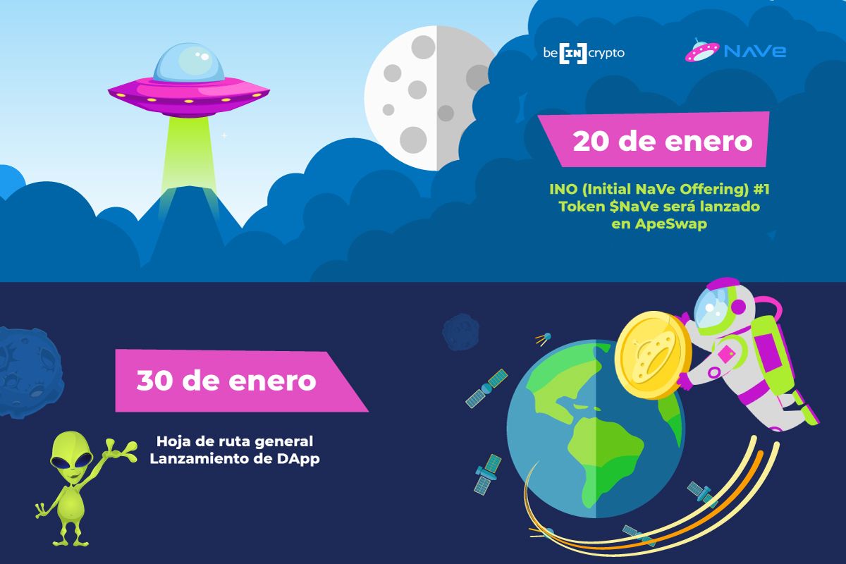 La INO (Initial NaVe Offering) del token NAVE de NaVe Finance se realizará el jueves 20 de enero de 2022 y tendrá una duración de 72 horas. Durante el proceso, 25.000.000 de tokens NAVE serán vendidos en ApeSwap utilizando BUSD.