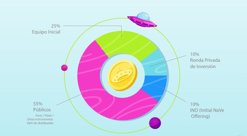 La distribución total de tokens NAVE se realizará de la siguiente manera: