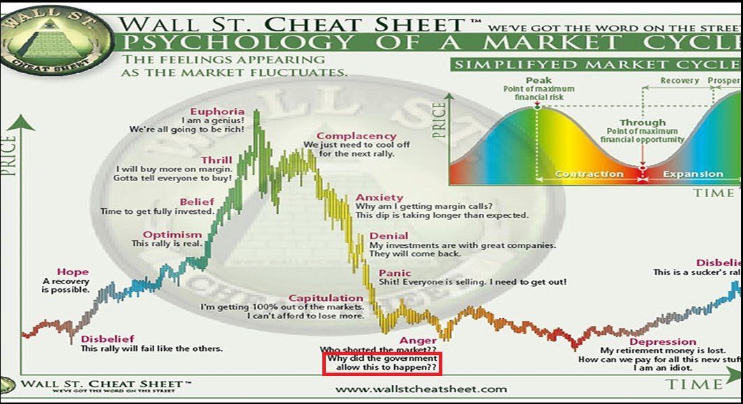 Sin embargo, según el sentimiento del mercado actual podría ser el momento ideal ya que según el diagrama clásico de Wall Street sobre los ciclos psicológicos el inversor podría discernir que el mercado de las criptomonedas se encuentra entre la etapa de la ira y la depresión, uno de los momentos perfectos para comenzar a entrar en un mercado ya que después comenzaría de nuevo el proceso al alza.