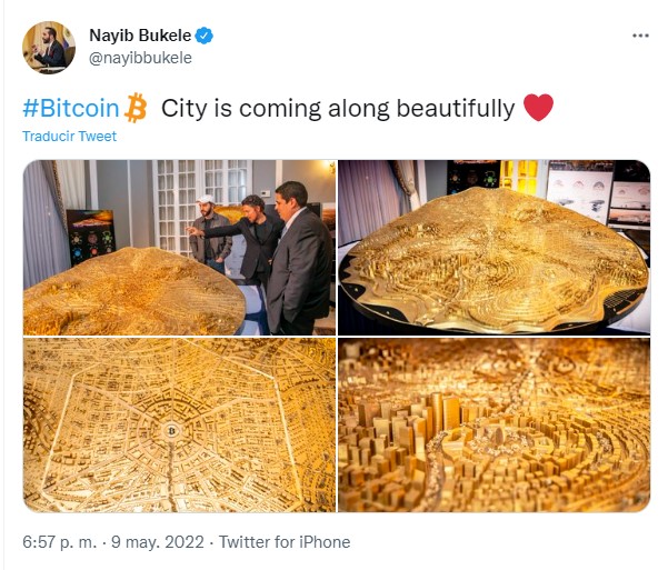 Con un tweet en donde decía que “La Bitcoin City va muy bien” el presidente Bukele mostraba al mundo los primeros planos de su proyecto. Estos están diseñados por el arquitecto mexicano, Fernando Romero, quien hasta el 2019 estaba trabajando en la construcción del nuevo aeropuerto de la Ciudad de México, pero se retiró del proyecto tras problemas con el presidente mexicano, Andrés Manuel López Obrador.