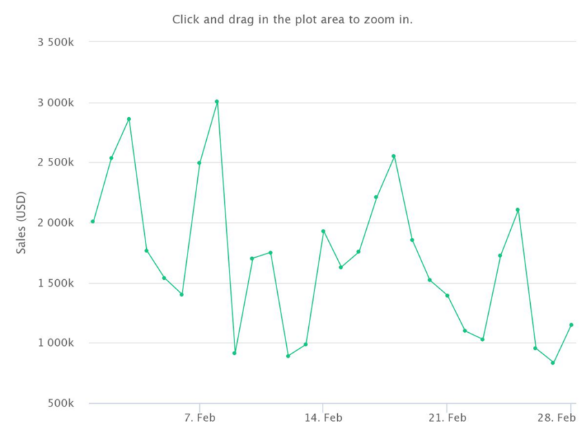 El volumen de ventas también cayó en febrero de 2022. El volumen total de ventas generado durante el segundo mes del año fue de aproximadamente 47 millones de dólares. En el espacio de 31 días, el volumen de ventas cayó un 38%.