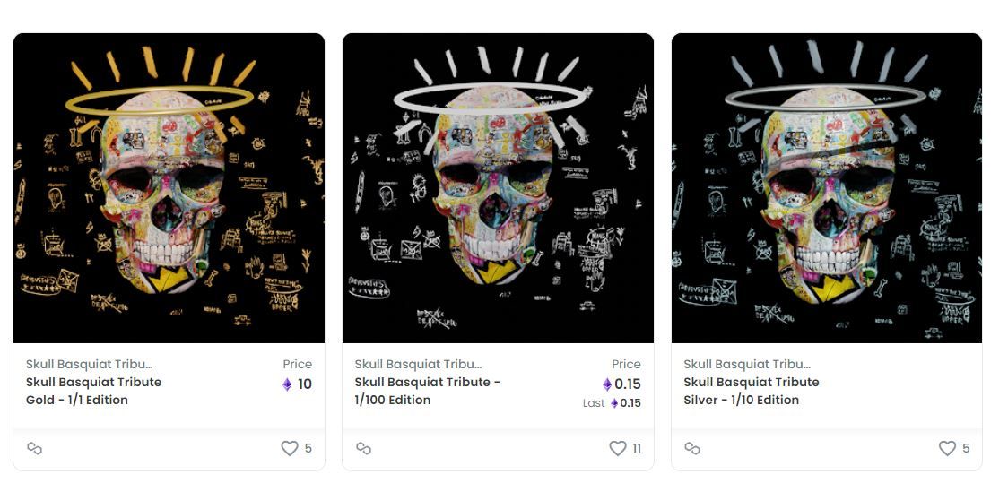 Nos ha ido bien, de momento han pujado hasta en 10 ETH. Anteriormente sacamos un cuadro del rapero Tupac, que se donó para la fundación del Papa Francisco y se subastó en la ONU, y a partir de ahí funcionó. En el aniversario de la muerte de Tupac Shakur, lanzamos y la respuesta fue bastante buena. Y ahora, el cuadro de la calavera de Basquiat, porque el original lo tiene el jugador de la NFL, Cam Newton.