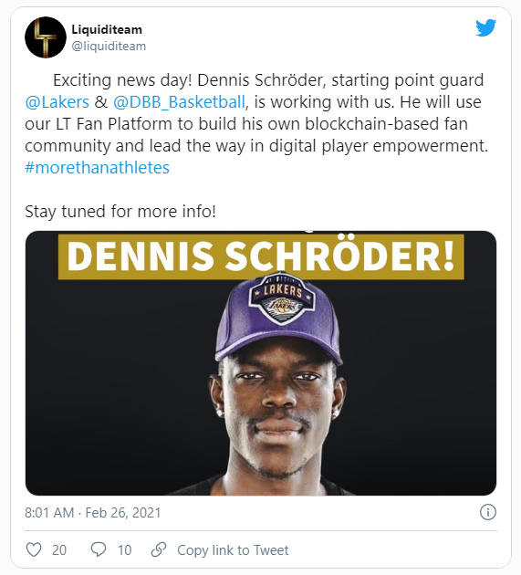 La “LT Fan Platform” de LiquidiTeam es una plataforma digital que permite al atleta u organización crear una experiencia de tipo VIP para su base de fanáticos. La aplicación es totalmente personalizable y funciona al permitir la interacción entre el fan y el jugador. Los últimos en registrarse son Dennis Schröder de Los Angeles Lakers de la NBA y el club de fútbol de la Bundesliga alemana, Borussia Dortmund.