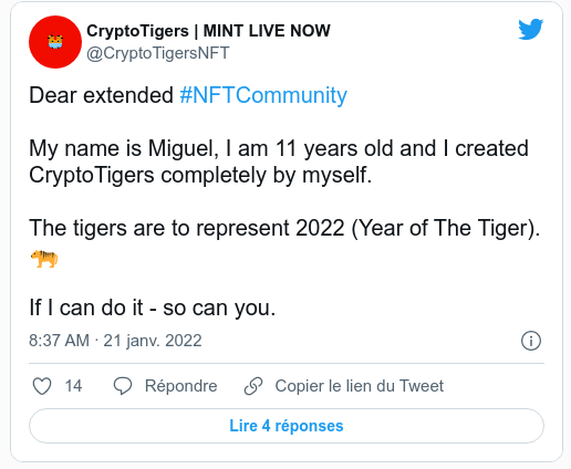 Fuente: cuenta de Twitter de CryptoTigers
