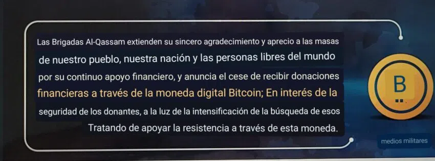 Al-Qassam Brigades (AQB), conocido como Hamás, empezó a experimentar con criptomonedas en los últimos años. Incluso, en 2019 empezaron a solicitar donaciones de Bitcoin por primera vez.