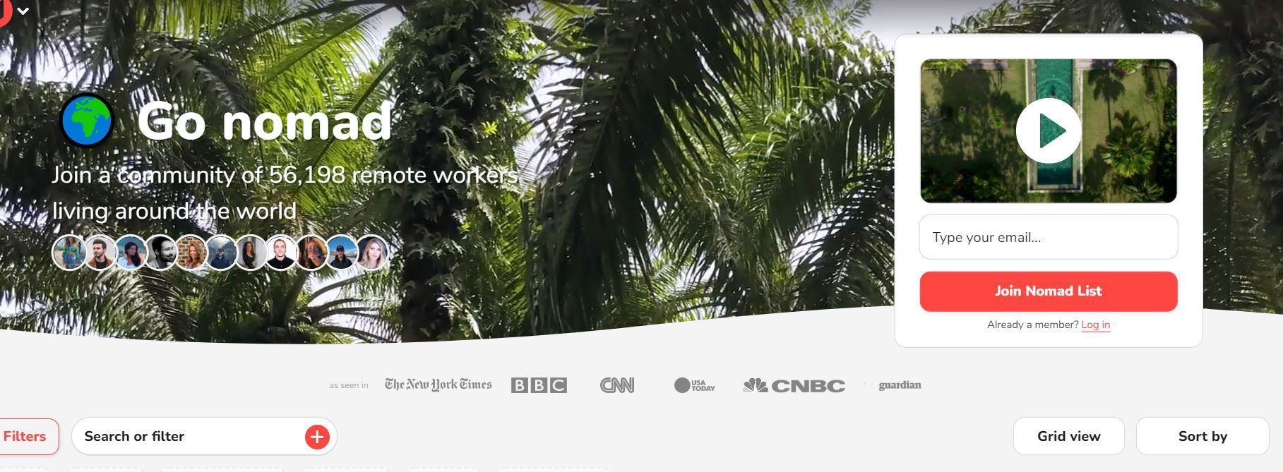 Sponsored SponsoredNomad List encuentra “los mejores lugares del mundo para vivir, trabajar y viajar como trabajador remoto”. Según su sitio web, “recopila millones de puntos de datos en miles de ciudades de todo el mundo, desde el costo de vida, la temperatura hasta la seguridad”.