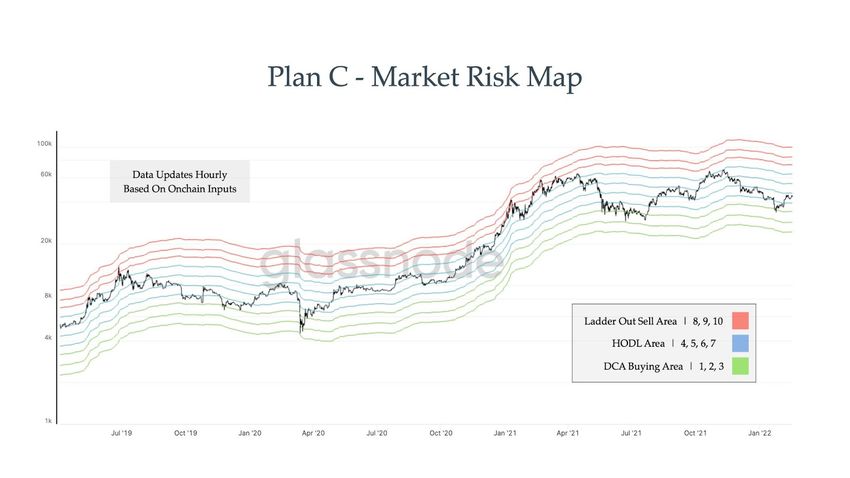 Según @TheRealPlanC, el valor actual del indicador, para un precio BTC de 43,000 dólares, es de 4,6. Curiosamente, los valores extremos para la situación actual del mercado son, según el indicador, 24,274 dólares para un nivel de riesgo de 1 y 99,284 dólares para un nivel de riesgo de 10.