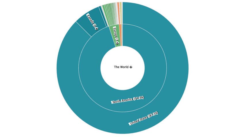 Estados Unidos, con mucho, tiene la mayor cantidad de instalaciones de cajeros automáticos de Bitcoin, con 33,779 cajeros automáticos.