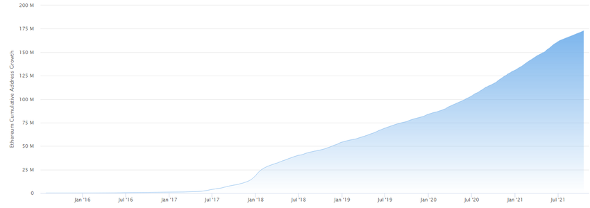 Otros hitos destacados incluyen un fuerte aumento en la cantidad de direcciones únicas en Ethereum, que actualmente es de 172,8 millones. Eso es más del doble de lo que era en enero de 2021.