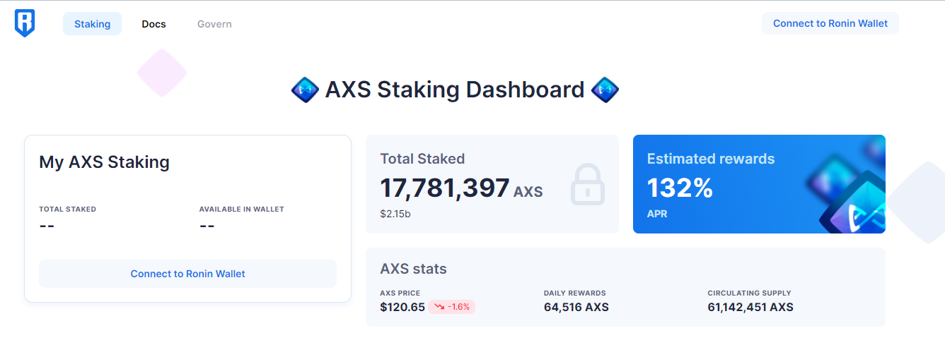 Ahora, a través del modo de staking, los usuarios del juego pueden obtener ingresos pasivos a través de sus tokens AXS. Según datos oficiales de Axie Infinity, la plataforma está recompensando a los usuarios con una tasa de rendimiento del 141% anual con staking.