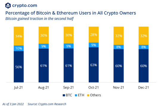 Ante este escenariio, Crypto.com explica que la adopción de las criptomonedas en el primer semestre de 2021 fue “notable”, y el principal impulsor del crecimiento fue Bitcoin, el cual registró su máximo histórico de 69,000 dólares el pasado mes de noviembre.