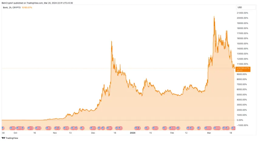SponsoredSorprendentemente, el precio de la memecoin aumentó un 20,400% desde su punto más bajo, creando un bucle de retroalimentación positiva que renovó el interés en Solana. Este repunte llevó a la distribución de 30 millones de tokens BONK a los usuarios del dispositivo móvil Saga. Esto amplificó aún más el interés tanto en BONK como en Solana.
