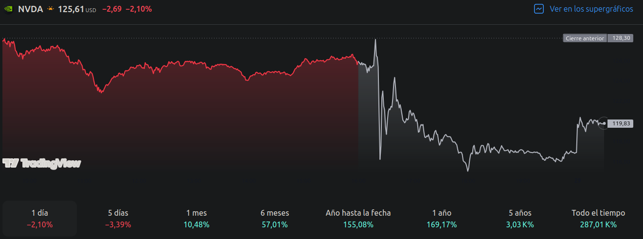 A pesar de los resultados positivos de la empresa, el precio de las acciones NVDA cayeron durante las operaciones fuera de horario. Cerraron un 2.1% a la baja el miércoles.