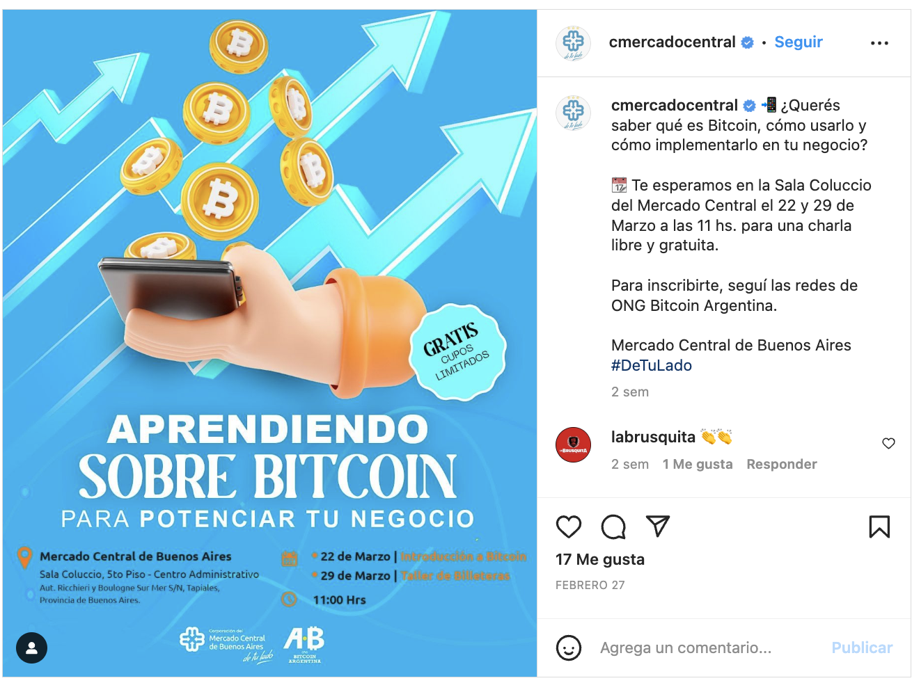 La reconocida ONG Bitcoin Argentina continúa con su cruzada por expandir conocimientos vinculados a las criptomonedas. En esta ocasión, se confirmaron dos charlas gratuitas denominadas “Aprendiendo sobre Bitcoin para potenciar tu negocio”. El lugar de ambos encuentros marca una curiosidad en cuanto a sus antecedentes nulos en la materia: el Mercado Central de la Ciudad de Buenos Aires.