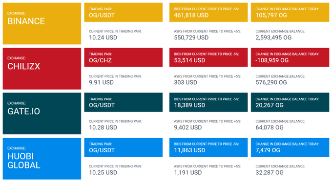 “$OG tiene la tasa de distribución más alta de todos los fan tokens de Socios. El 69% de su suministro total de 5 millones de tokens en Chiliz Chain está circulando. Su principal exchange es Binance, 2,5 millones de los 3,5 millones que circulan $OG están en direcciones Binance”.