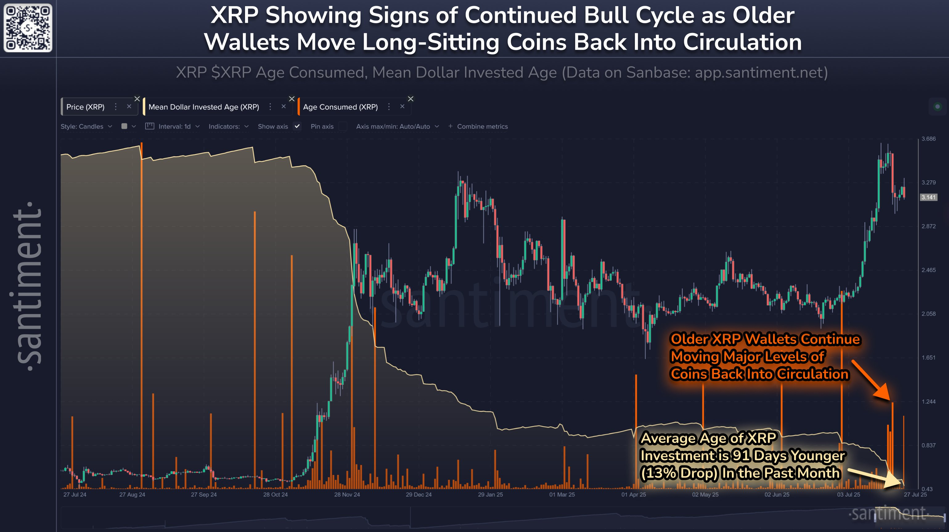 De acuerdo con los datos más recientes de Santiment, un indicador on-chain clave es la reactivación de tokens inactivos, lo que refleja un renovado interés de los inversores y una mayor participación de quienes mantienen posiciones a largo plazo.