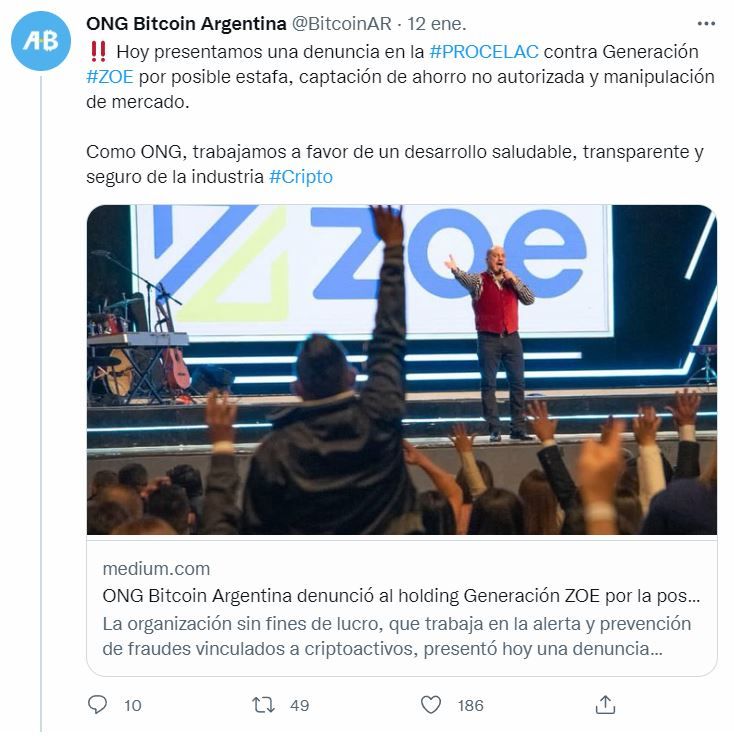 Recordaron que uno de sus objetivos como organización es promover el desarrollo del ecosistema cripto en habla hispana “de forma saludable”, así como promover la inclusión financiera con criptomonedas y con la tecnología blockchain y sostuvieron que tienen pruebas suficientes para demostrar el esquema Ponzi de Generación Zoe.