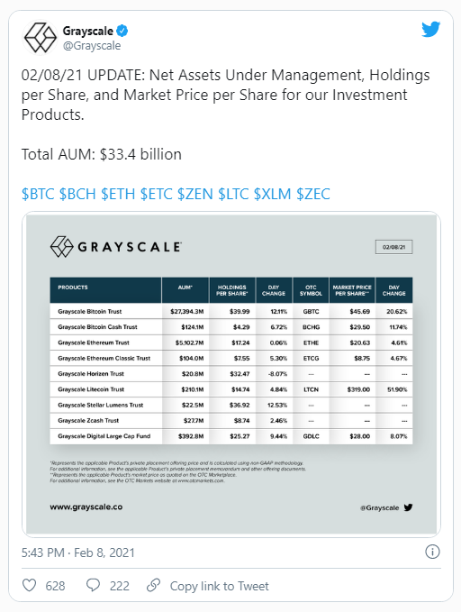 Además, la empresa de análisis de negocios MicroStrategy ha seguido el ejemplo de Grayscale, recientemente comprando otros 10 millones de dólares en BTC en efectivo. Sus tenencias totales superan ahora los mil millones de dólares.