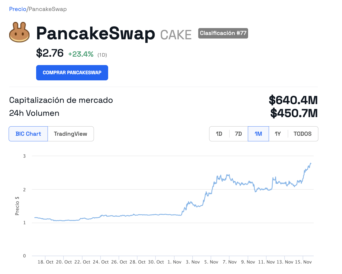 A raíz de este anuncio, el precio del token CAKE experimentaba una notable alza que, al momento de esta redacción, rondaba el 22%.