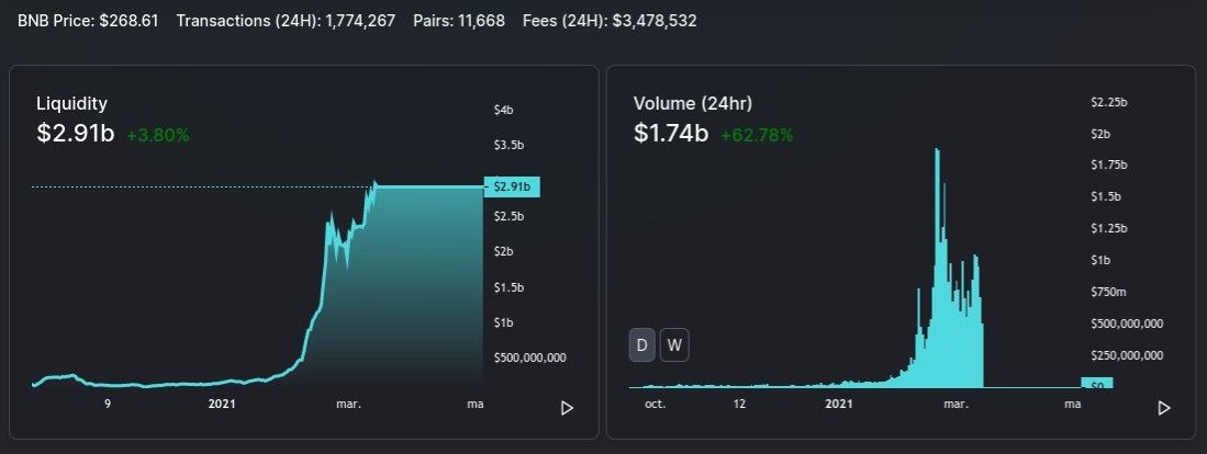 Al mismo tiempo, PancakeSwap también ha experimentado un volumen de trading de más de 1.7 mil millones de dólares en el mismo período de tiempo, mientras Ethereum registró 1.427 millones de dólares.